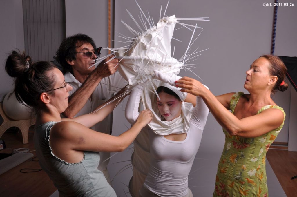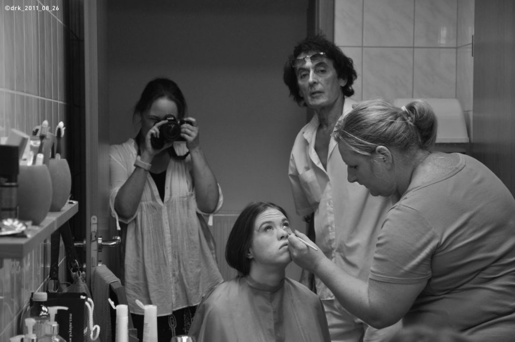 Készülő Baltazáréji álom előadásunk plakátjához készítettünk fotókat egy kölcsönműteremben. Király Tamás jelmezei itt még csak háromnegyed részben készek, a make-up is most nyeri el végső formáját. A Baltazáréji álom egy divatszínházi produkció, a budapesti bemutató különleges helyszínen, a Király Fürdőben volt 2011. szeptember 13-án. (Fotók: Hübner Dorka)